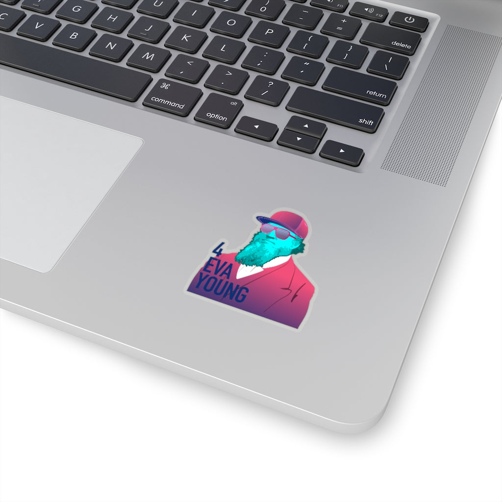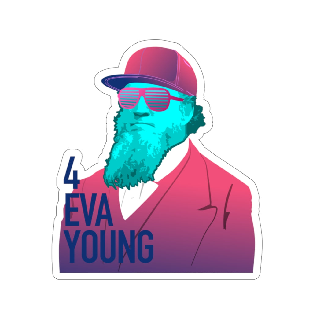 The magenta and blue Brigham Young design with text that says "4 EVA YOUNG." Die-cut stickers in clear or white. The easy-peel backing makes for great ease-of-use, while the matte finish helps your Brigham look sweet on any surface. A kiss-cut provides you with the ultimate flexibility for implementing your vision—this method cuts the sticker into any shape you desire, while leaving the back intact so that it can be smoothly peeled off the page.