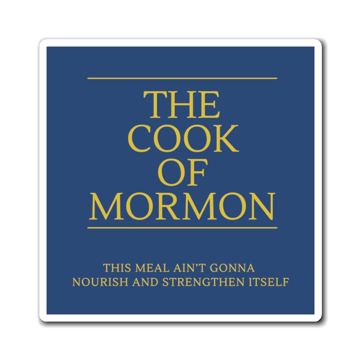 A fun refrigerator magnet for the Latter-day chef, Book of Mormon lover in your life. This is our Cook of Mormon design on a 3 inch magnet.