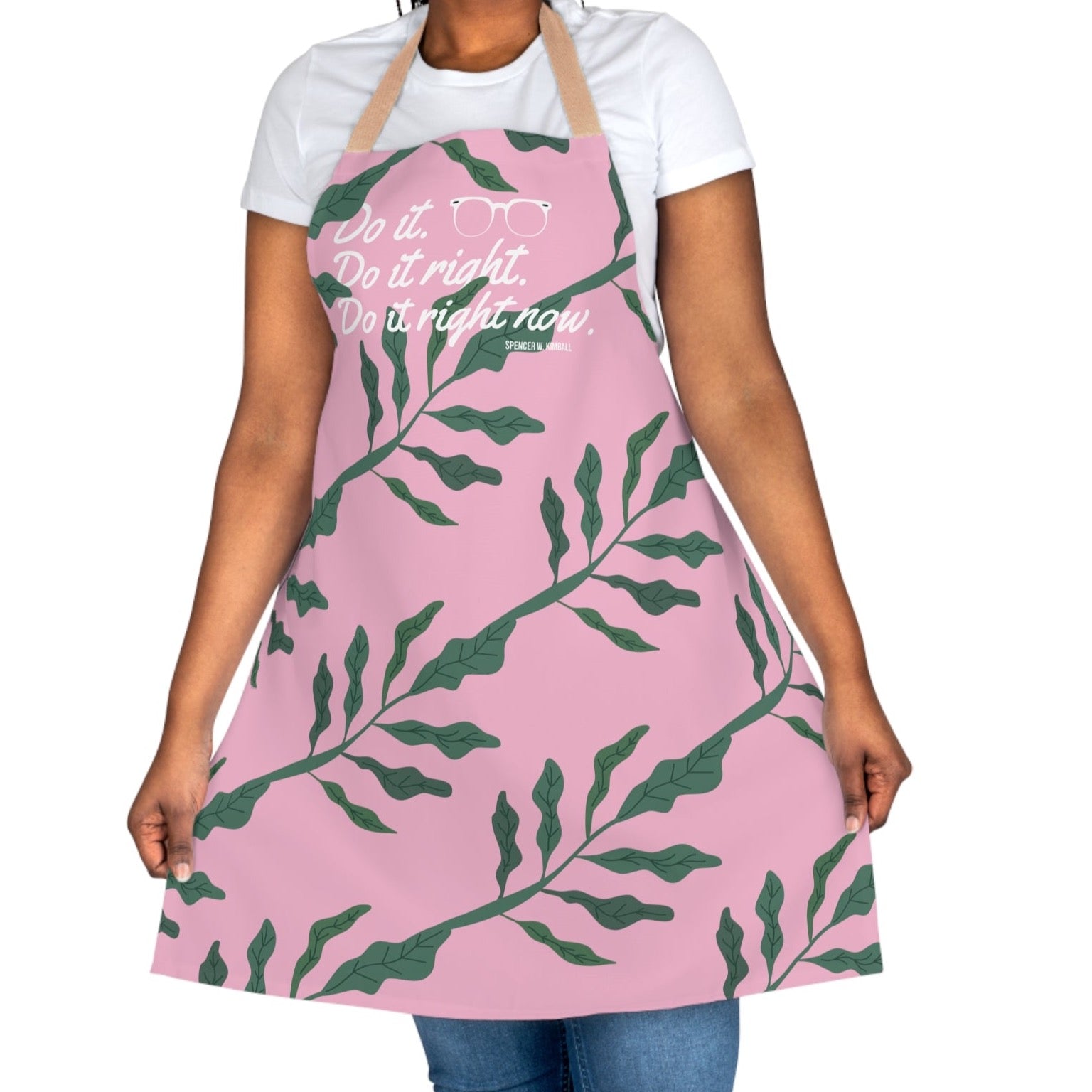 Stay inspired and motivated with these aprons, featuring the powerful and uplifting quote from Spencer W. Kimball: "Do it. Do it right. Do it right now." These aprons are versatile, adjustable, and serve as a constant reminder to focus on your priorities, strive for excellence, and to act with determination and purpose.