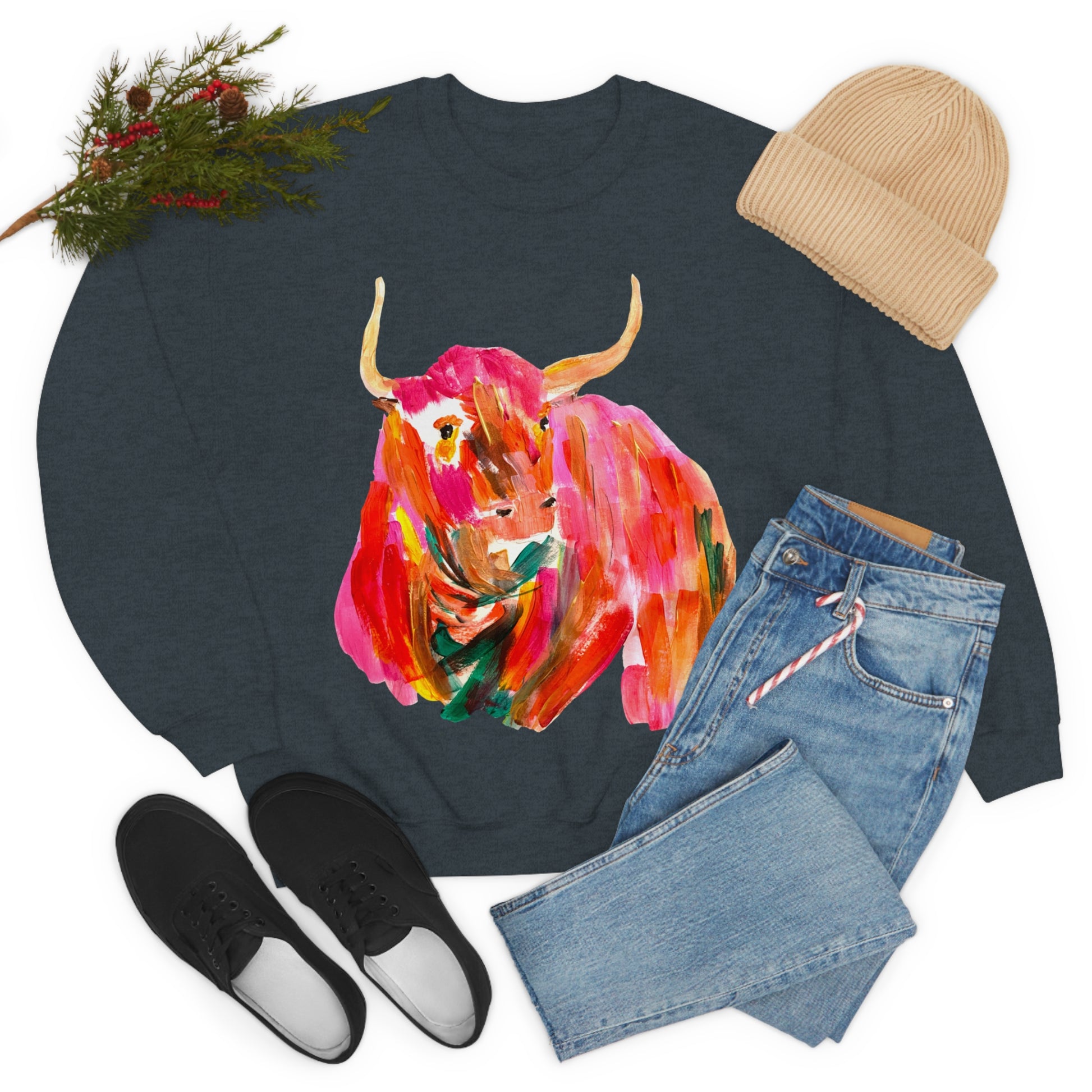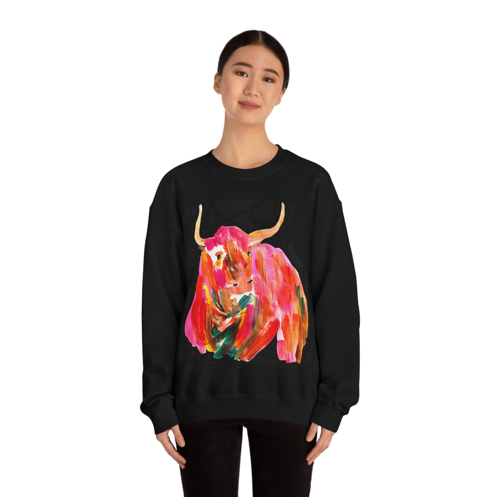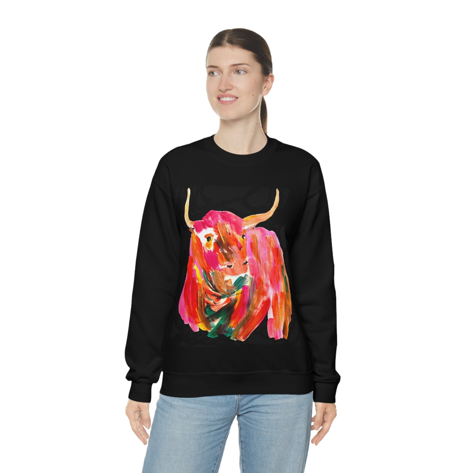 Sweatshirt - Hand Painted Red Desert Bull with Pop Color by Madness and Clarity