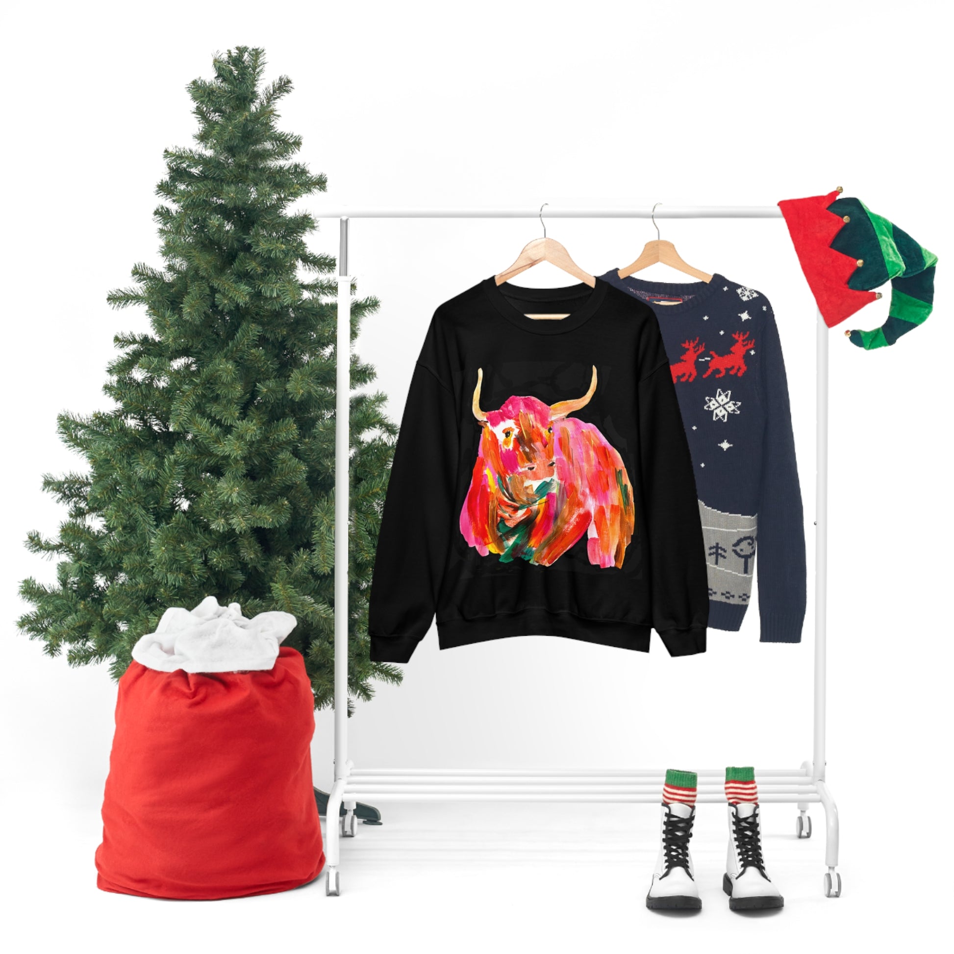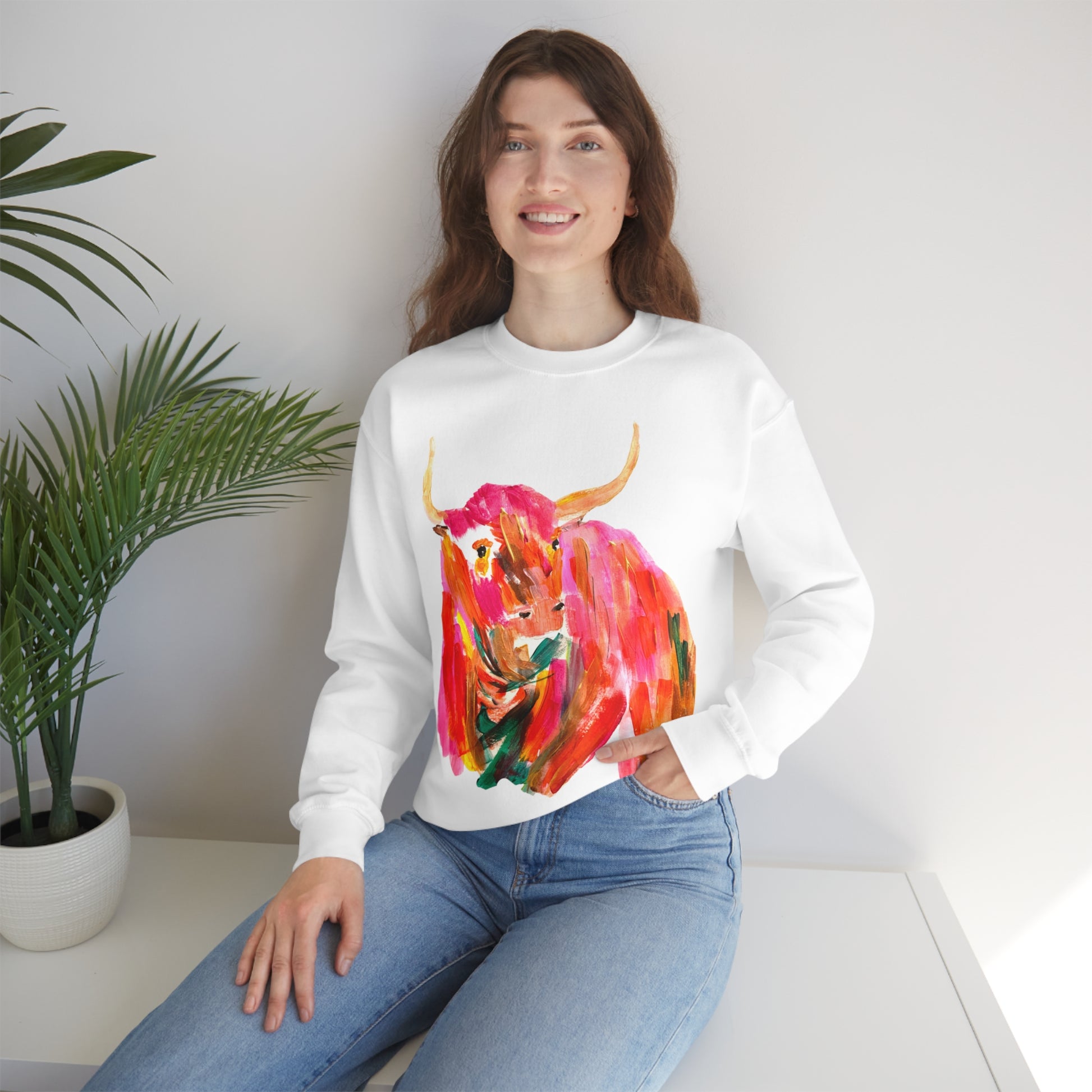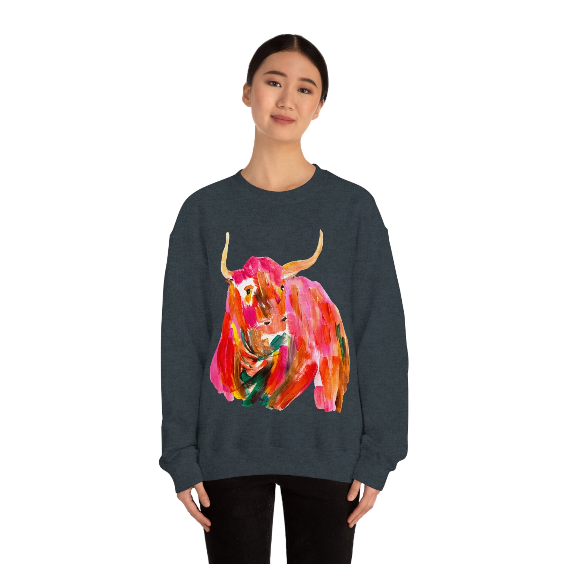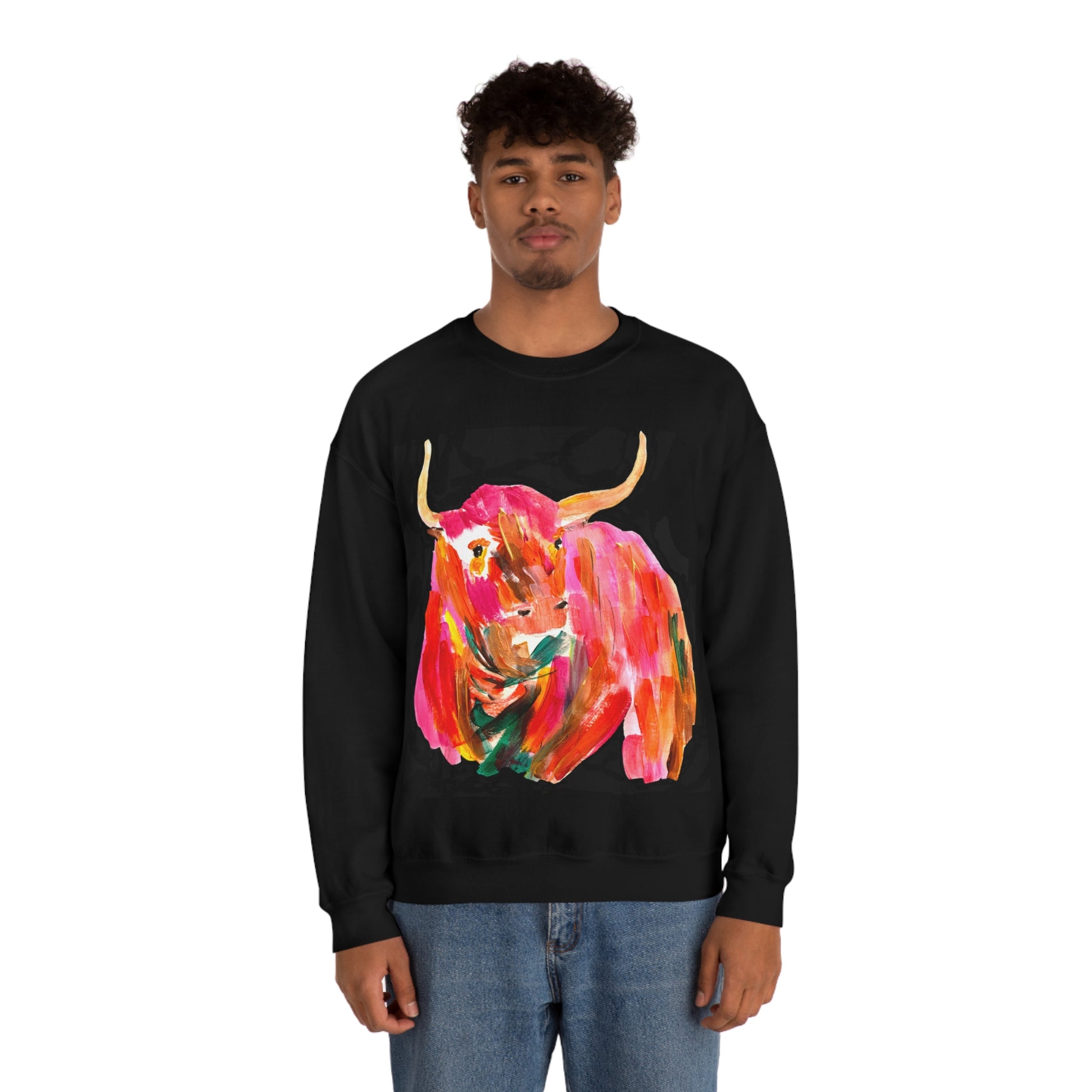 Sweatshirt - Hand Painted Red Desert Bull with Pop Color by Madness and Clarity