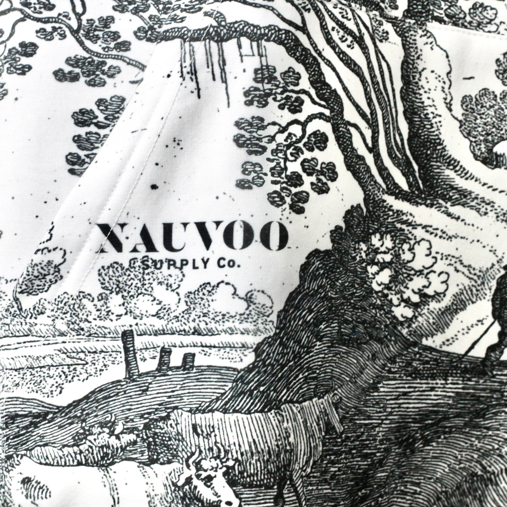 Our Nauvoo Supply white hoodie has that blend of street style and homestead appeal in a super cozy, thick, hoodie printed in the US on an American-made garment.