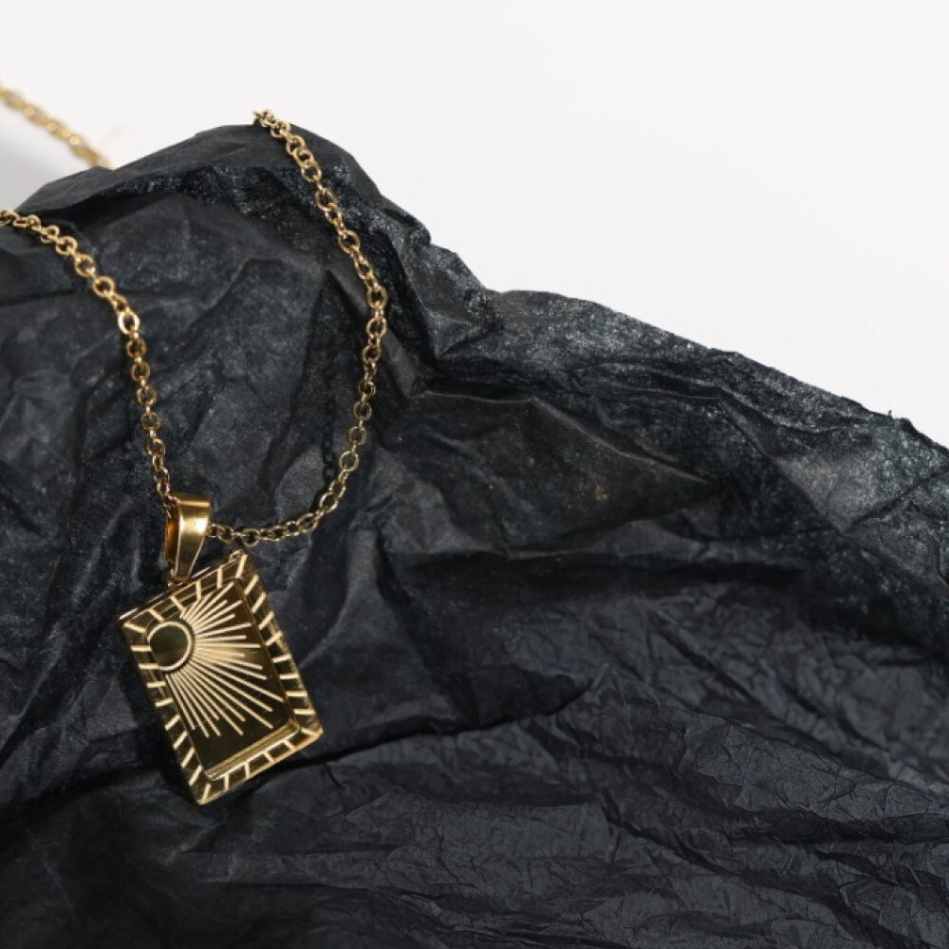 This stainless steel 14K gold-plated necklace is a great accessory for the modern minimalist who wants a subtle reminder their highest aspirations. This is not precious jewelry, so it's good for everyday wear, but each piece is plated with 18K gold so you can elevate your everyday look.