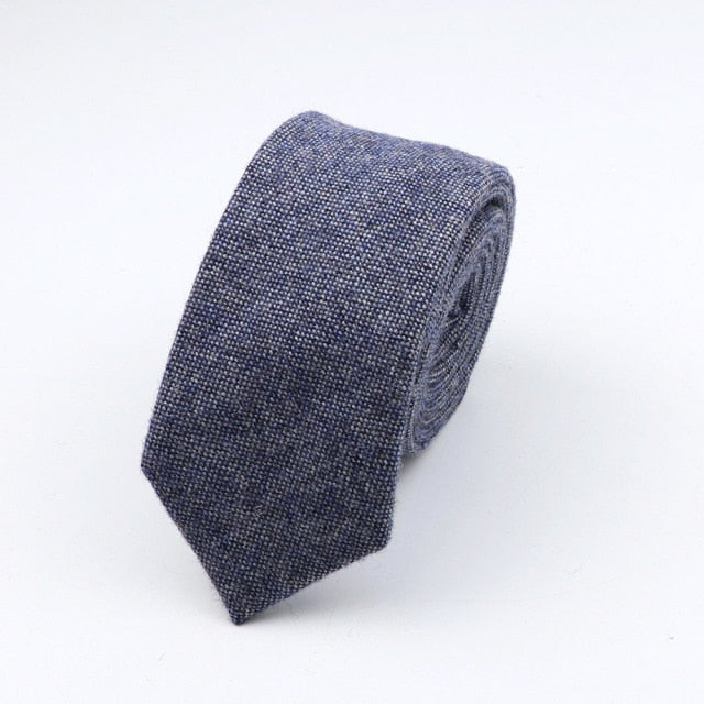 We've got these timeless narrow ties in high-quality cashmere wool in a variety of neutral colors with flecked, herringbone patterns, or solid.