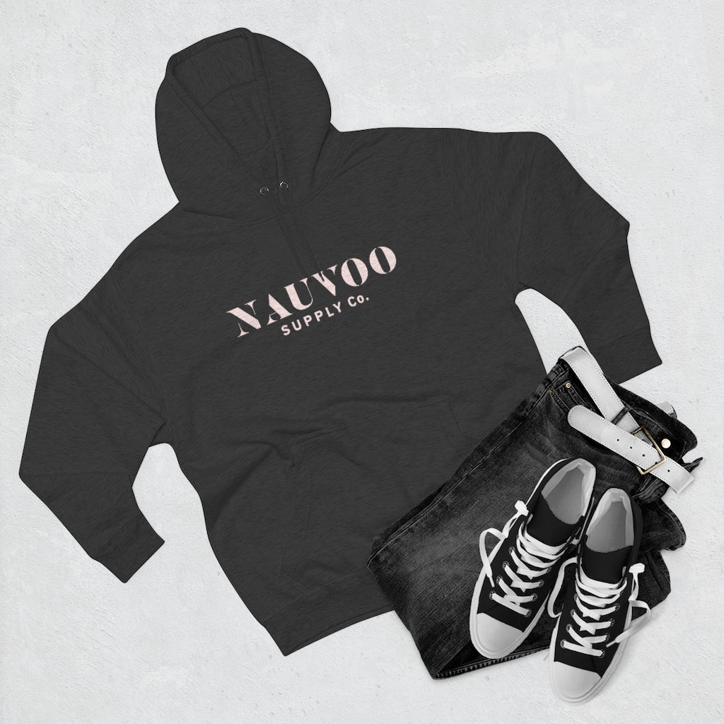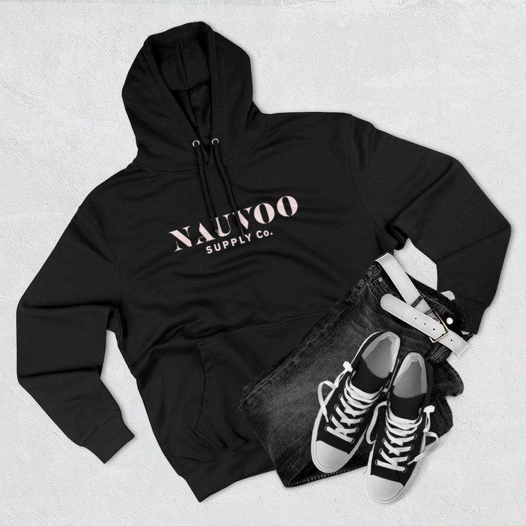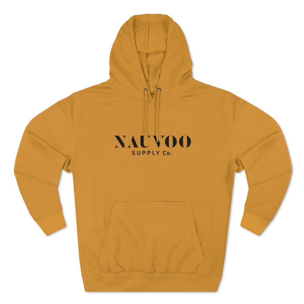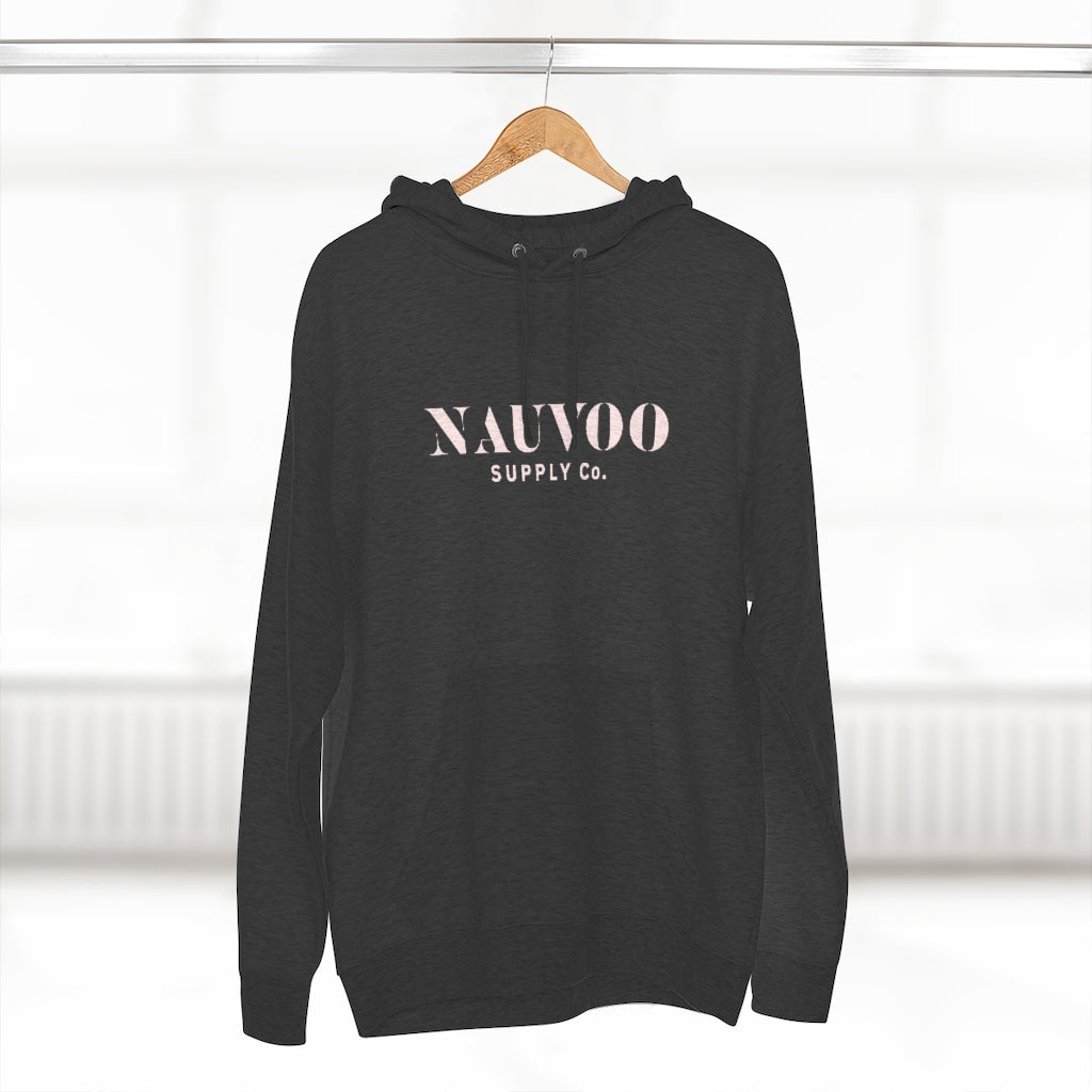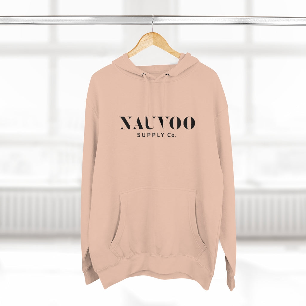 ABOUT THE DESIGN / Our Nauvoo Supply Co stencil logo on the front of a super cozy cotton poly blend hoooded sweatshirt.