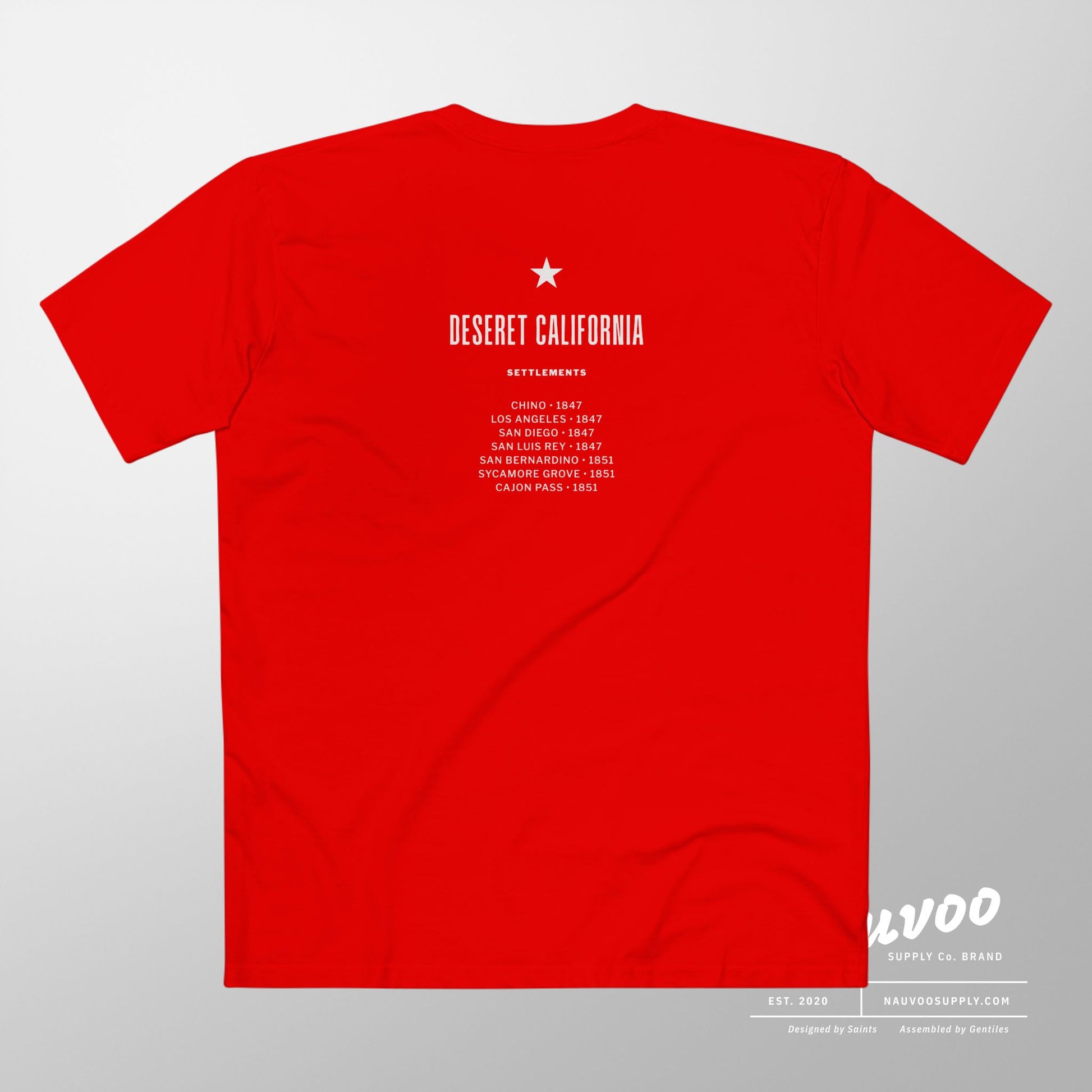 Honoring the legacy of the Mormon Battalion and the pioneers of the “Mormon Corridor,” our Deseret Republic Heritage Tee is a premium artifact for the Saints who traversed the Golden State. This isn’t just a shirt; it’s an alternate-history statement piece that reimagines the iconic California flag through the lens of the 19th-century vision to connect the Salt Lake Valley to the sea. Featuring the “Bear and the Hive” mashup on the chest and a detailed historical “tour list” on the back, this is the ultimate heritage piece for descendants, LDS history buffs, and California natives.