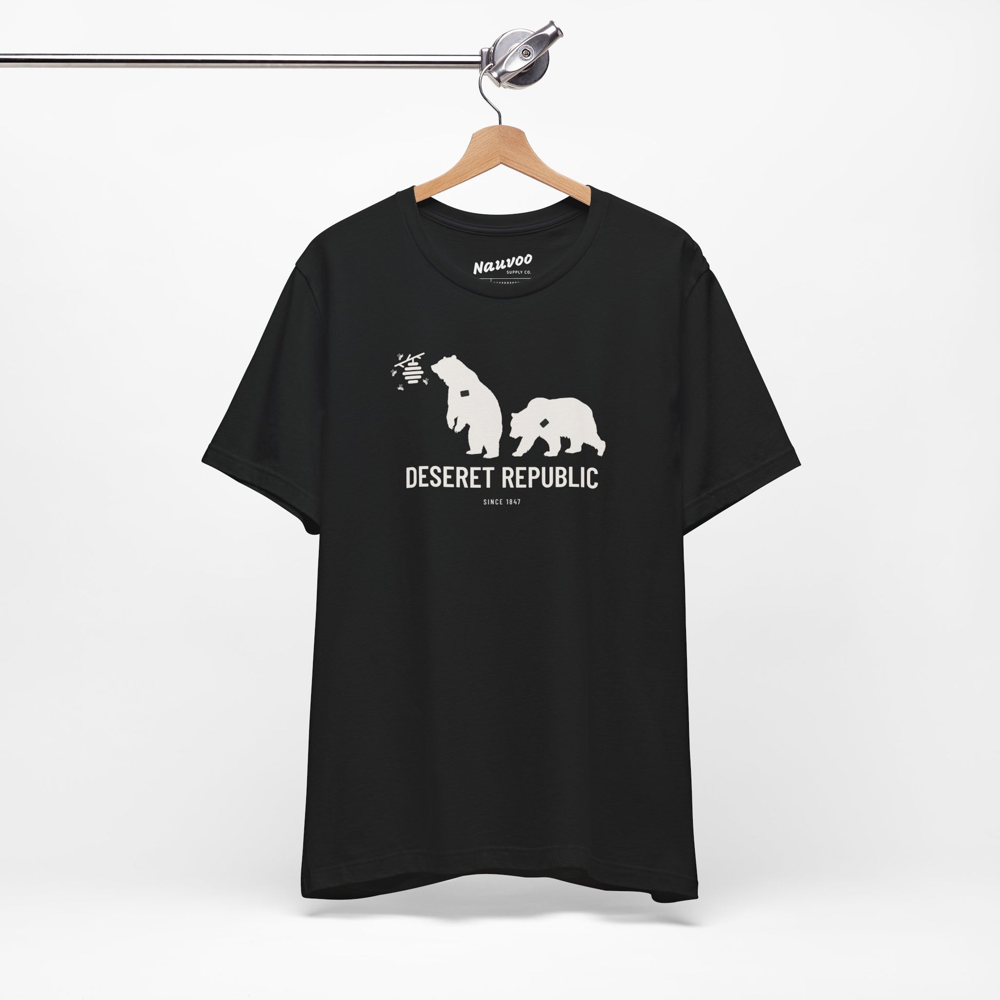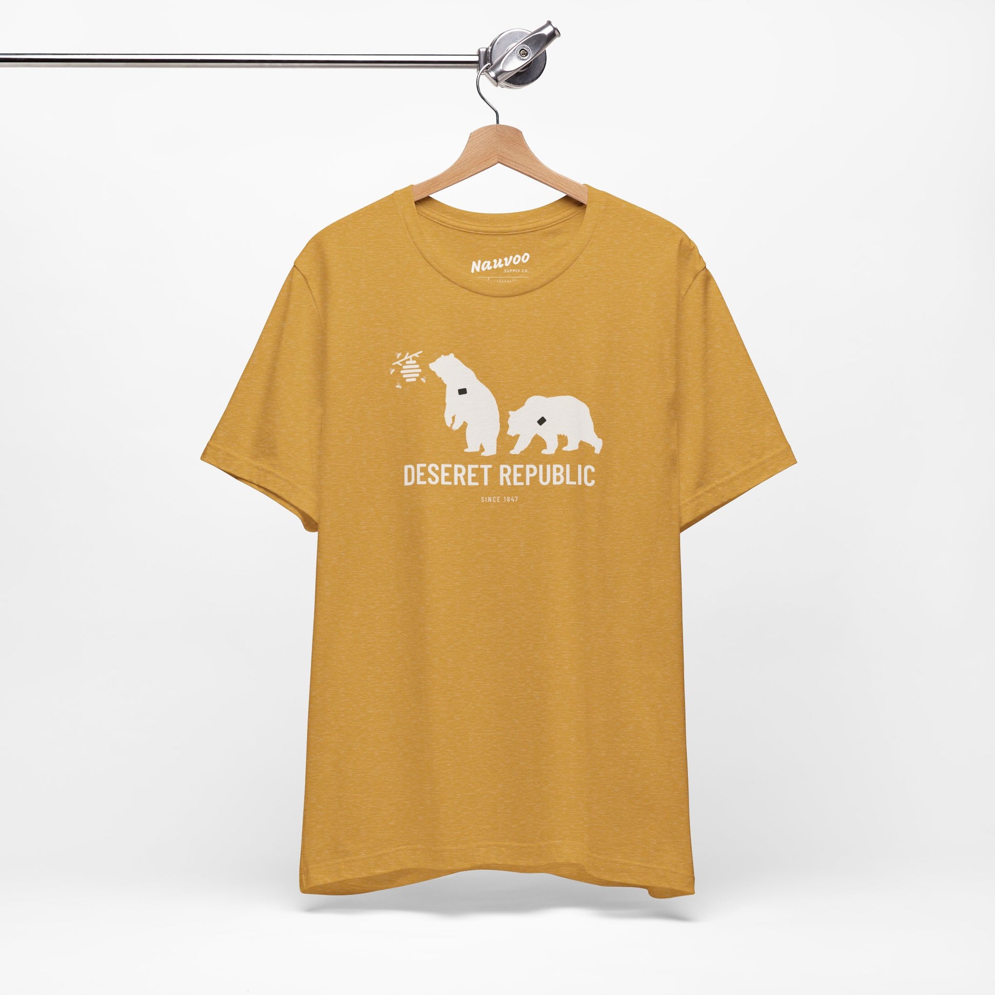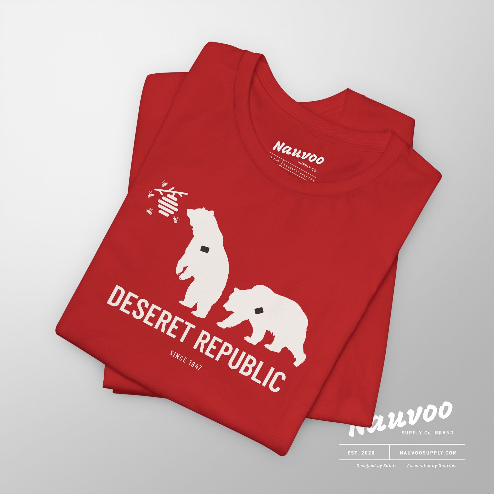 Whether you're headed to the San Diego hills or the Sacramento valley, the Deseret Republic Missionary Edition Tee is the ultimate way to celebrate a California call. This design takes the iconic "Bear Flag" aesthetic and gives it a "Called to Serve" twist. Featuring two bears—complete with their own missionary name tags—approaching the hive, it’s a nod to the industry, faith, and history of the Saints who have been building Zion in California since 1847.