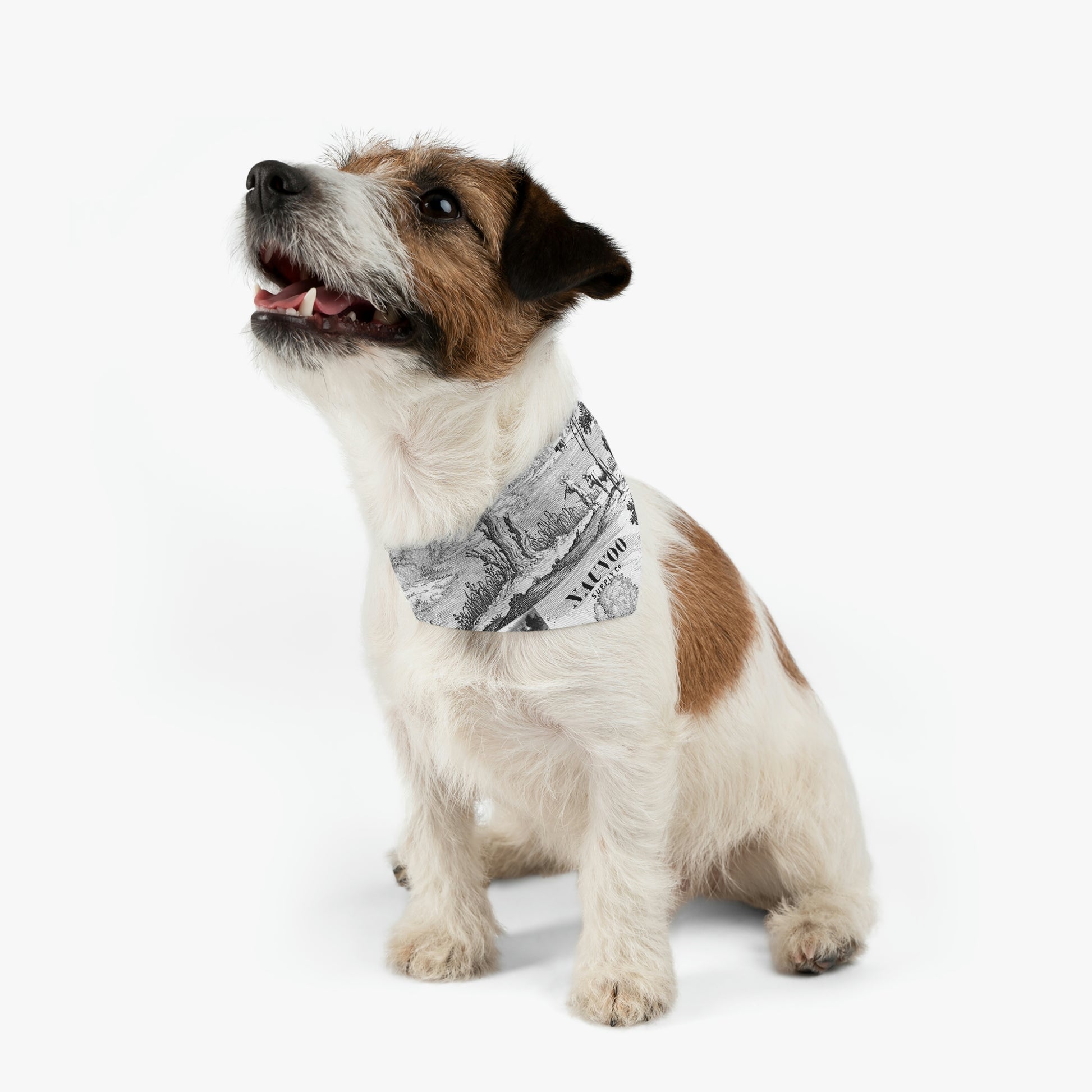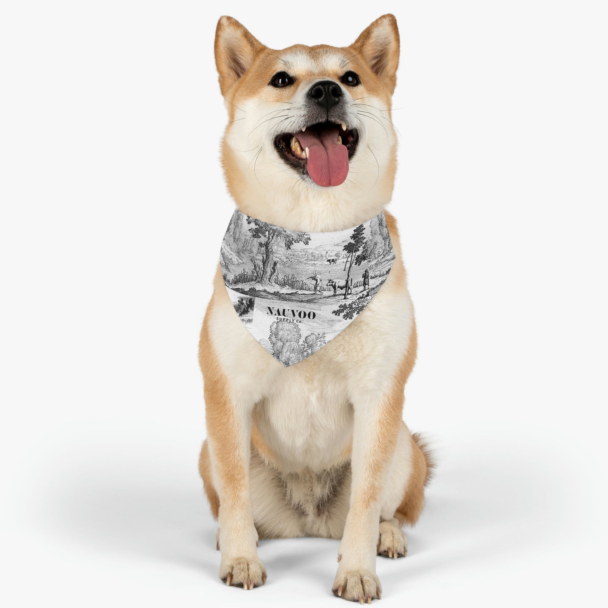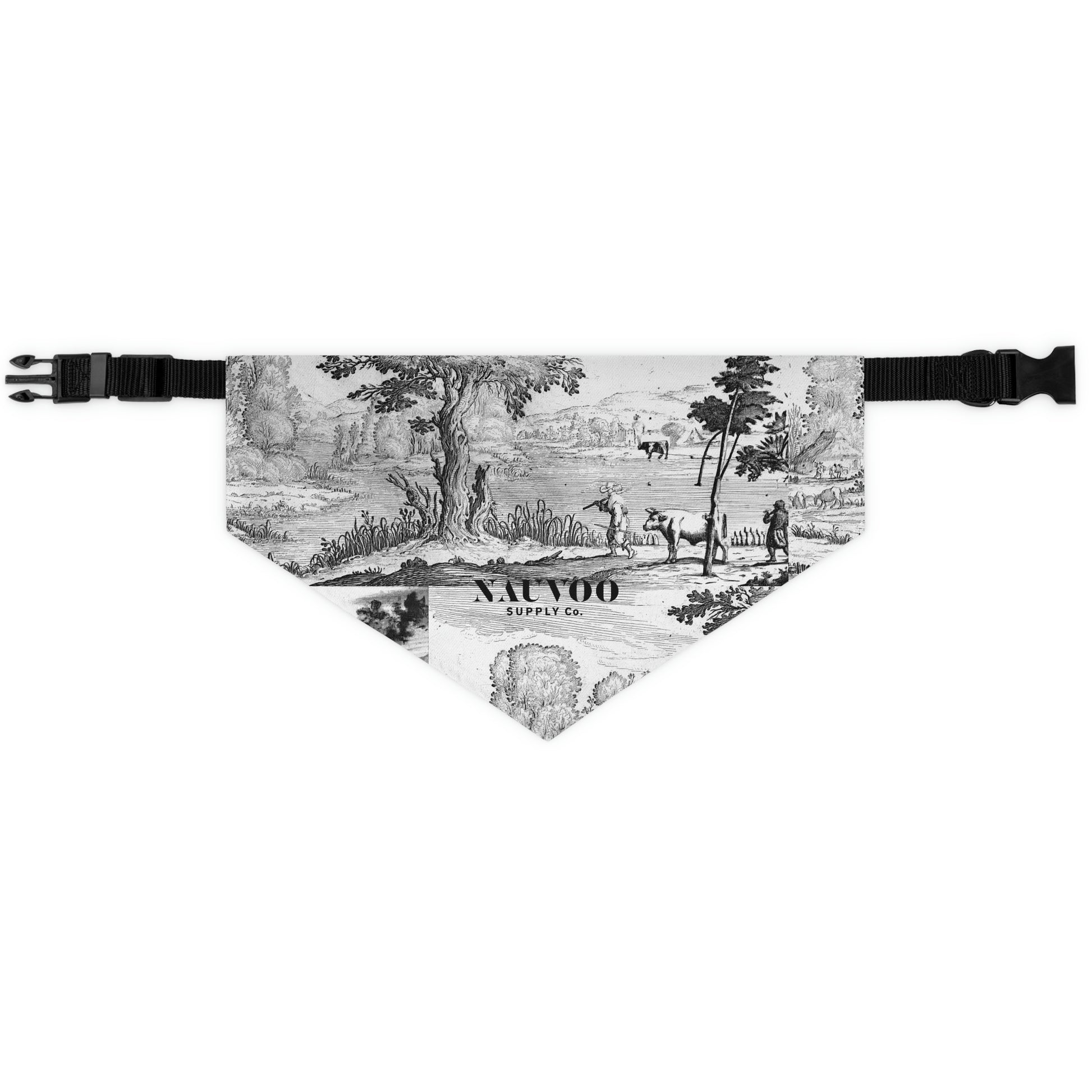 Our Nauvoo Supply black and white pet bandana collar puts a fun spin on standard pet accessories. It is made of polyester duck fabric printed on one side. The bandana collar is available in three sizes to fit any pet. Machine washable. The collar fastening helps to keep the bandana fitting correctly, even during play.