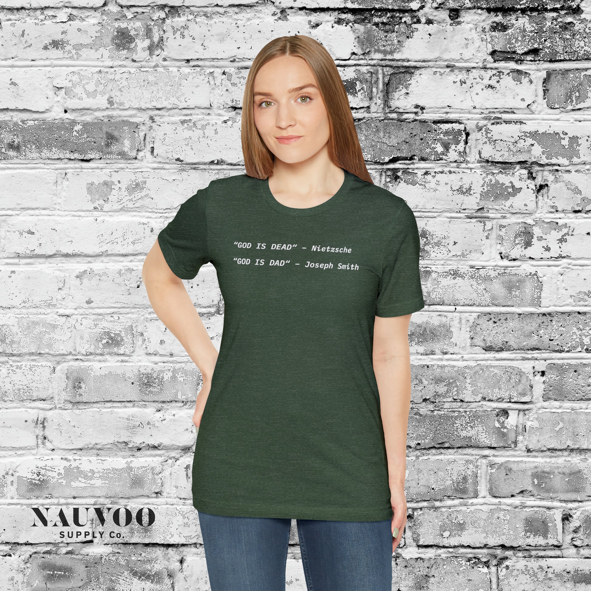 Funny LDS Shirt - Neitzsche vs Joseph Smith “God is dead, God is dad”