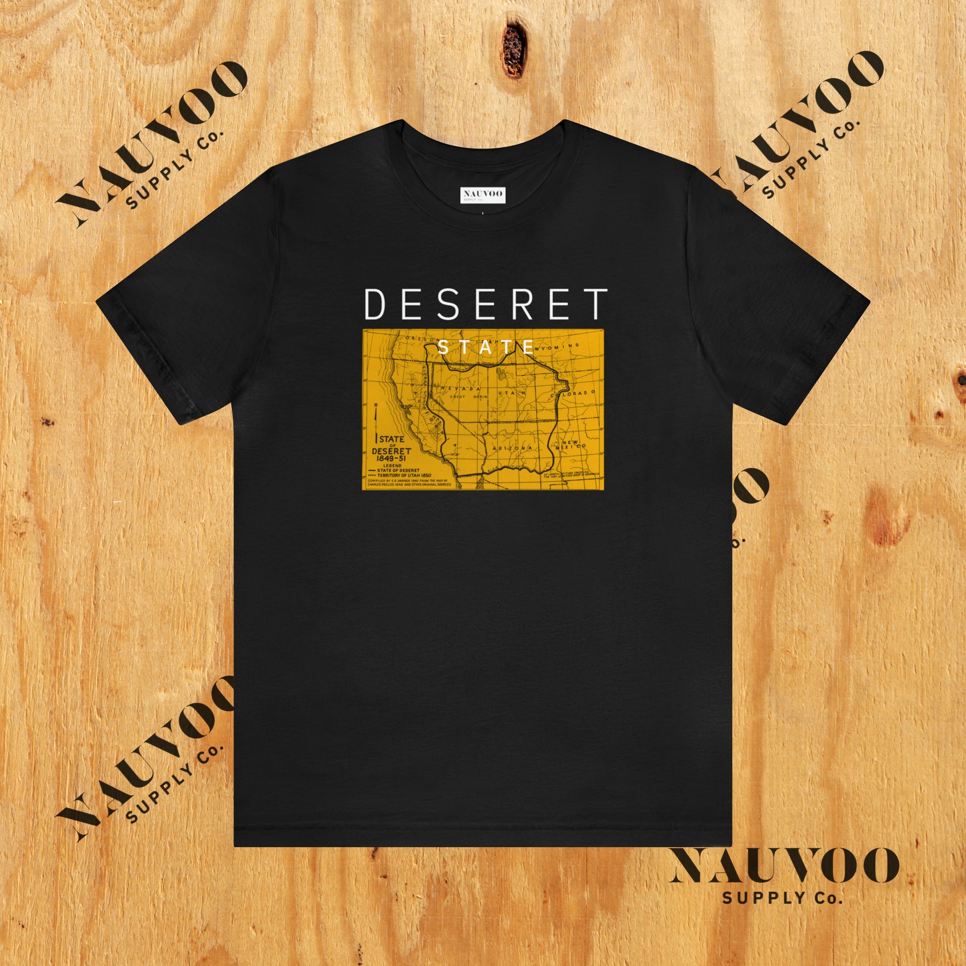 This shirt features the historic map from 1846 with the proposed boundaries of the State of Deseret.